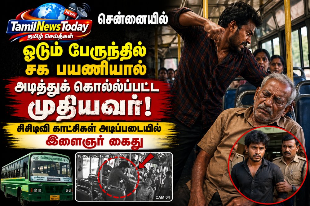 சென்னை: Apr-26 சென்னையில் ஓடும் பேருந்தில் பயணித்துக் கொண்டிருந்த முதியவர் ஒருவர், சக பயணியுடன் ஏற்பட்ட தகராறின் போது கடுமையாக தாக்கப்பட்டு உயிரிழந்த சம்பவம் பரபரப்பை ஏற்படுத்தியுள்ளது.
