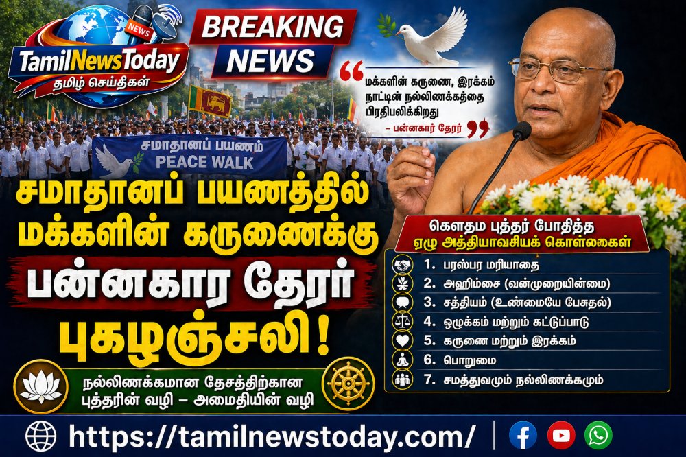 கொழும்பு, ஏப்ரல் 28 – சமாதானப் பயணத்தின் போது இலங்கை மக்கள் வெளிப்படுத்திய கருணை, இரக்கம் மற்றும் ஒற்றுமை உணர்வுக்கு வணக்கத்துக்குரிய பன்னகார தேரர் பாராட்டுகளை தெரிவித்துள்ளார்.