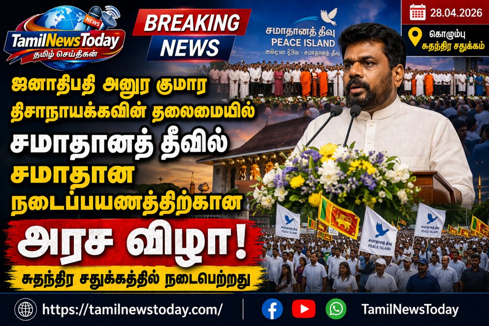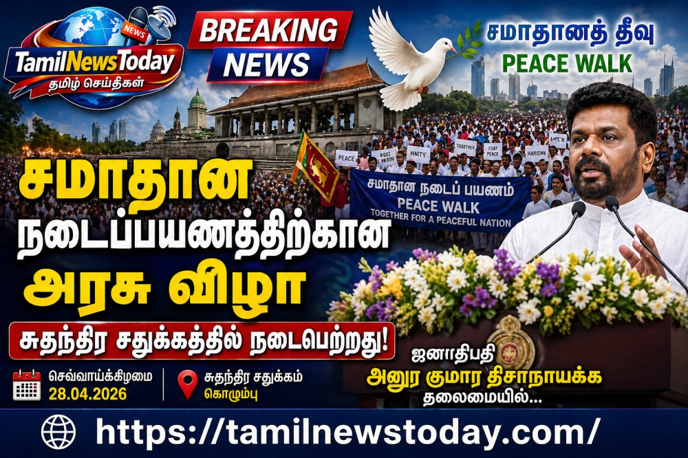 கொழும்பு, ஏப்ரல் 28 – ஜனாதிபதி அனுர குமார திசாநாயக்கவின் தலைமையில், “சமாதானத் தீவு” என்ற கருப்பொருளில் ஏற்பாடு செய்யப்பட்ட சமாதான நடைப்பயணத்திற்கான அரச விழா இன்று (28) மாலை கொழும்பு சுதந்திர சதுக்கத்தில் நடைபெற்றது.