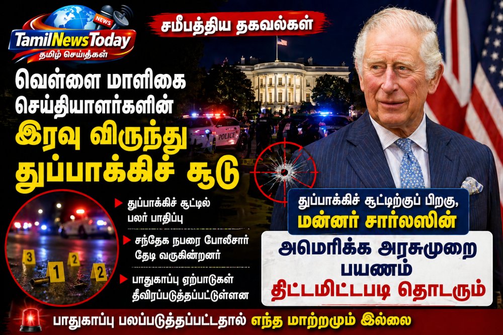 வெள்ளை மாளிகை விருந்து துப்பாக்கிச் சூடு: பாதுகாப்பு அதிகரிப்பு – மன்னர் சார்லஸ் பயணம் திட்டமிட்டபடி தொடரும்